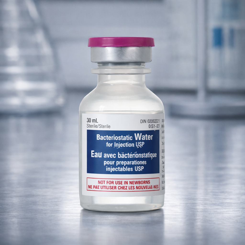 Bacteriostatic Water is sterile water that contains a small amount of benzyl alcohol to help prevent bacterial growth after the vial has been opened.